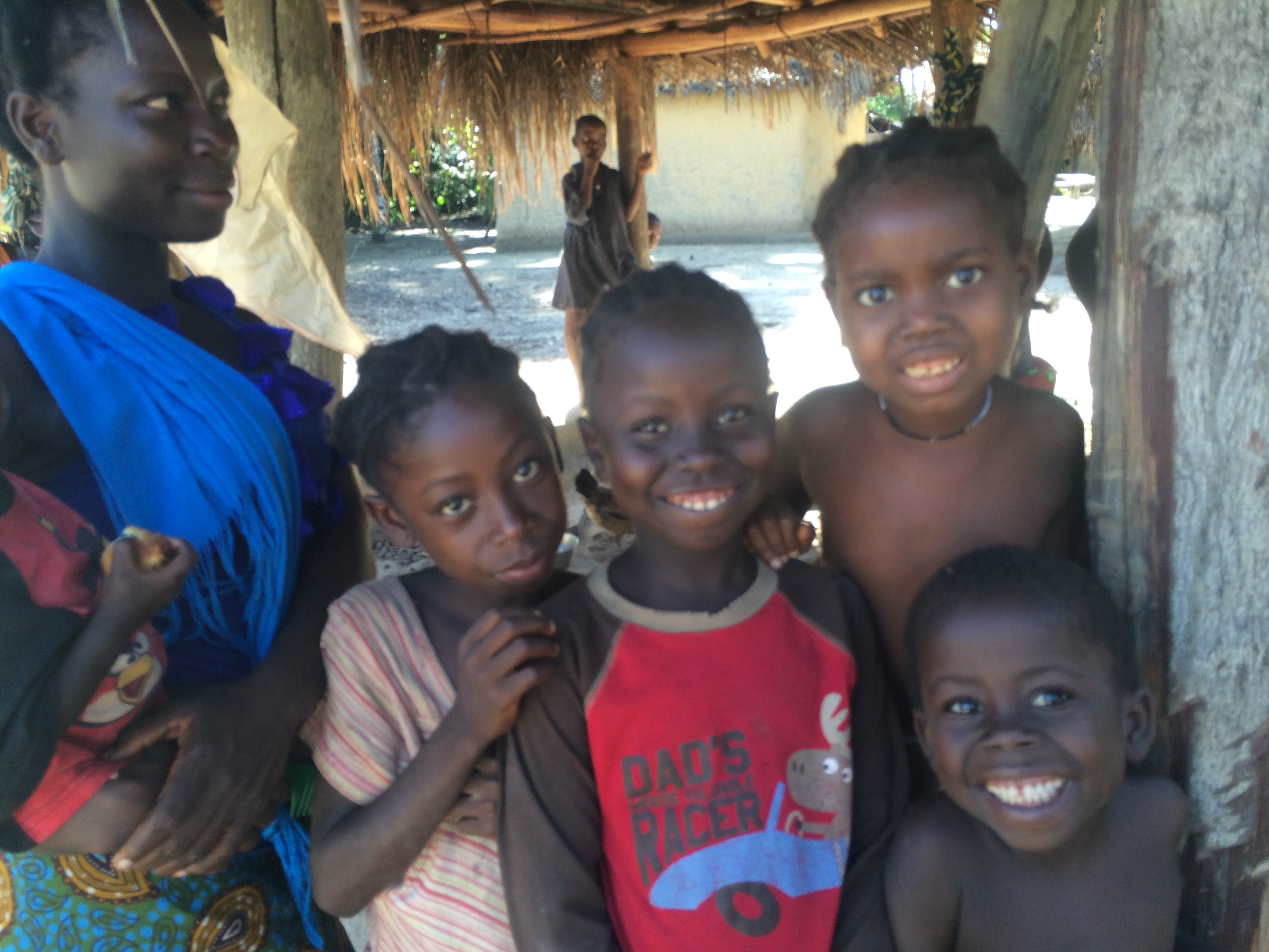 Little naked children running around, young girls and boys alternately pounding their stick pestles into hand carved tree stump mortars, women cooking over fires under open A-frame thatched roof “kitchens”–all framed by a gorgeous backdrop of rolling hills covered in palms, rubber and cottonwood trees, and other large-leafed foliage unknown to me. Just beautiful!