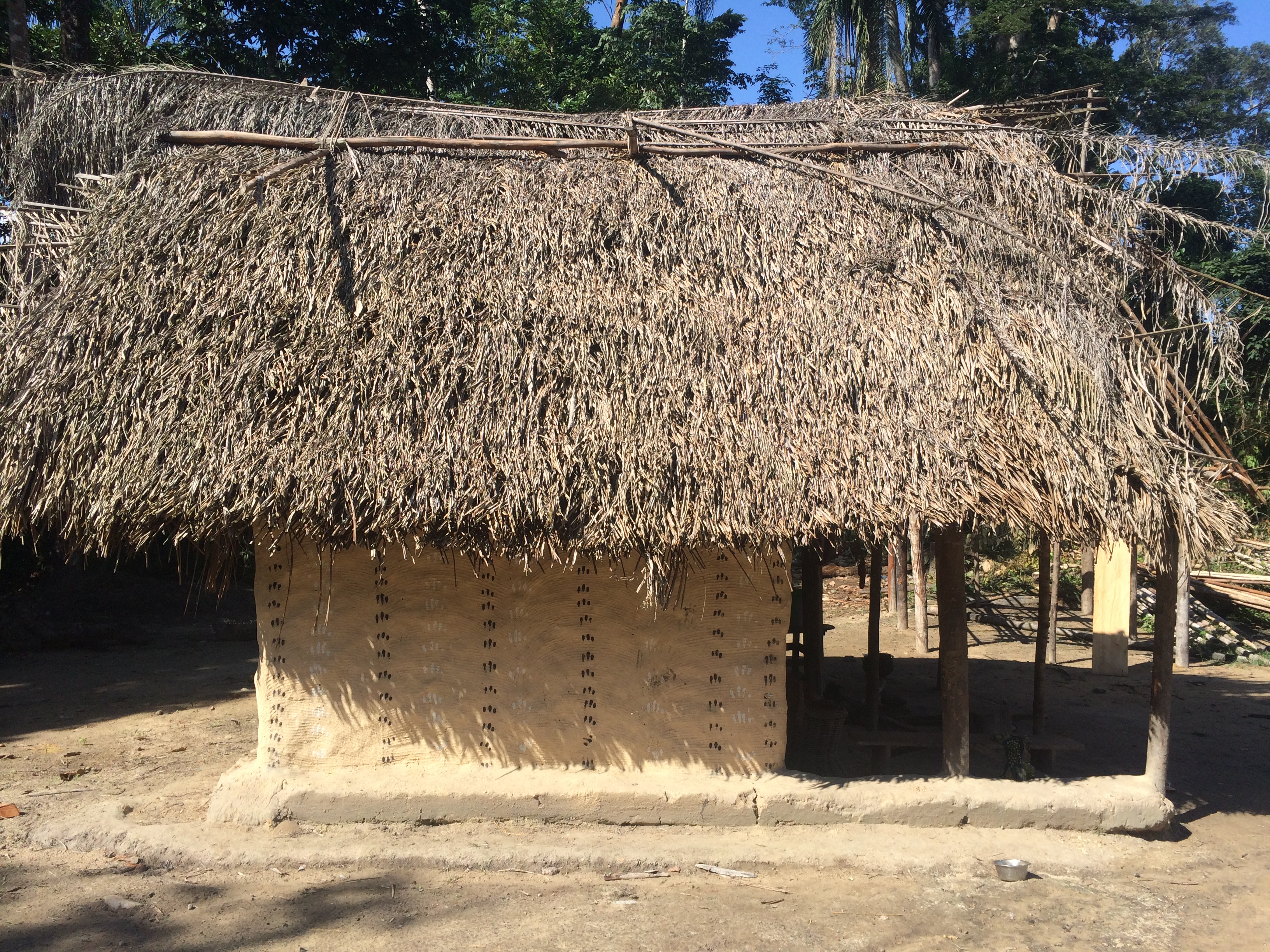 Along our jungle journey we encountered a compact Nissan sedan stuck deep in the ruts of wet clay road soil. Sam jumped out, retrieved a chain from under the seats of our Jeep, tethered the stranded stranger and extracted him with the torque of our 4-wheel drive. Appreciative of his new-found freedom, his car seemed to scurry off like a frightened field mouse. Upon arrival at our clandestine lumber source, we pulled into a small village to find a neatly stacked pile of 51 wawa boards patiently awaiting us in the hot Liberian sun. When I “de-Jeeped” (if the airlines can say “de-plane”, I can say “de-Jeep”), the villagers began coming out of the woodwork. A little girl sat under the kitchen thatching while she scraped rice kernels off stalks into a hand-woven basket/tray. (see her video here: https://youtu.be/FzCVd1pyvjU)