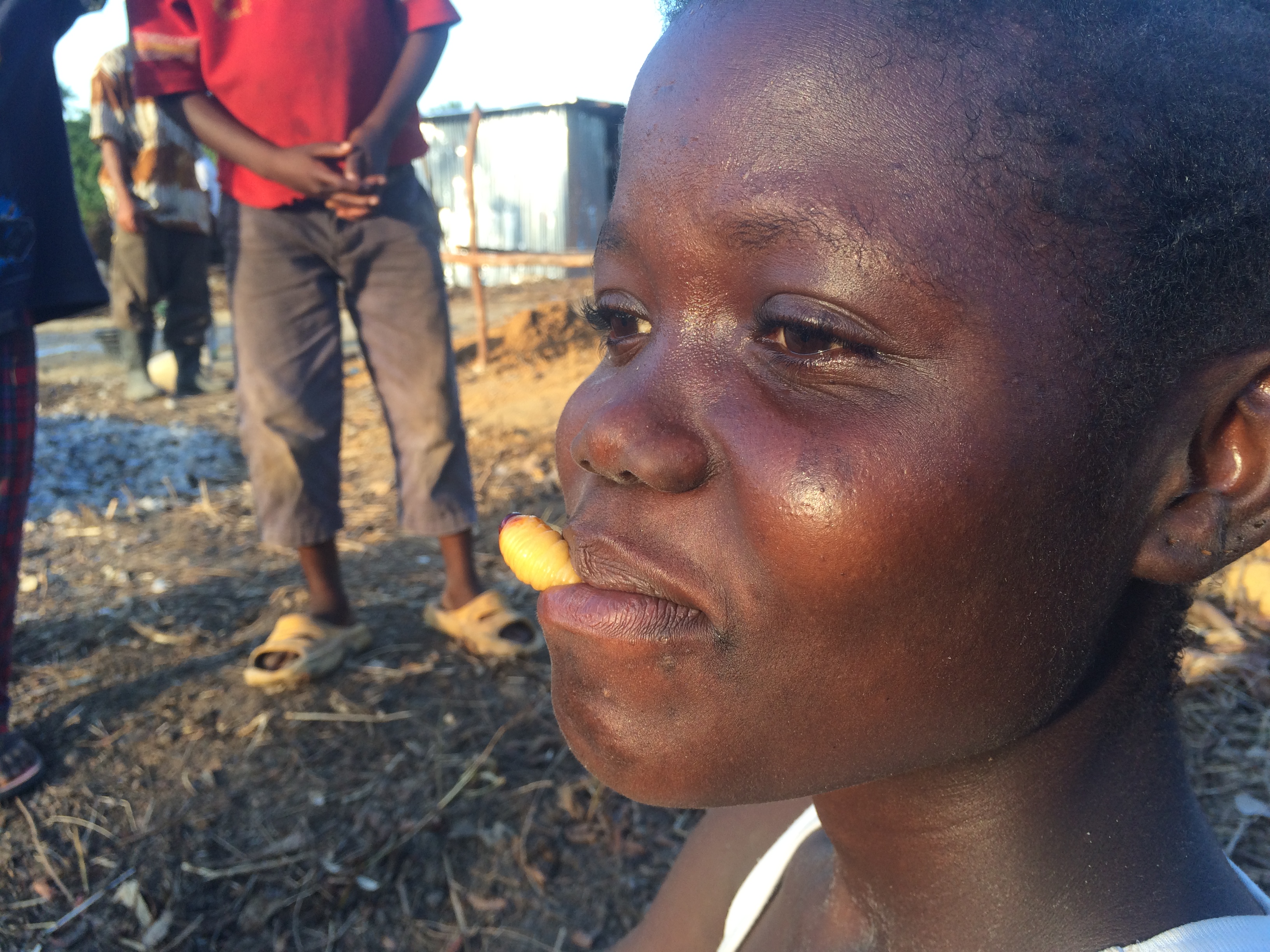We made it safely back to the work site and my bottled water had run out, but it was after 5:00 so I’d be “home” at Phebe very soon. Since I was without a vehicle until my return to Monrovia to pick up baby FOTON, Sam loaned me the use of his Jeep. Before being able to escape the parched heat, another two trucks laden with sand arrived and blocked my exit. I took the opportunity to watch a line of ten women emerge from the bush with bags of crushed rock on their heads for the cement mixers. I sat down next to them after they had unloaded and a small boy came over with a bucket full of small clear plastic bags, each containing three slowly moving very fat white worms with black heads immersed in water. Apparently this is a larvae treat they pull from bamboo trees, claiming it tastes very “sweet”. They pop the black head off with their fingers and eat it raw…Oh sweet larvae! Not in my mouth!