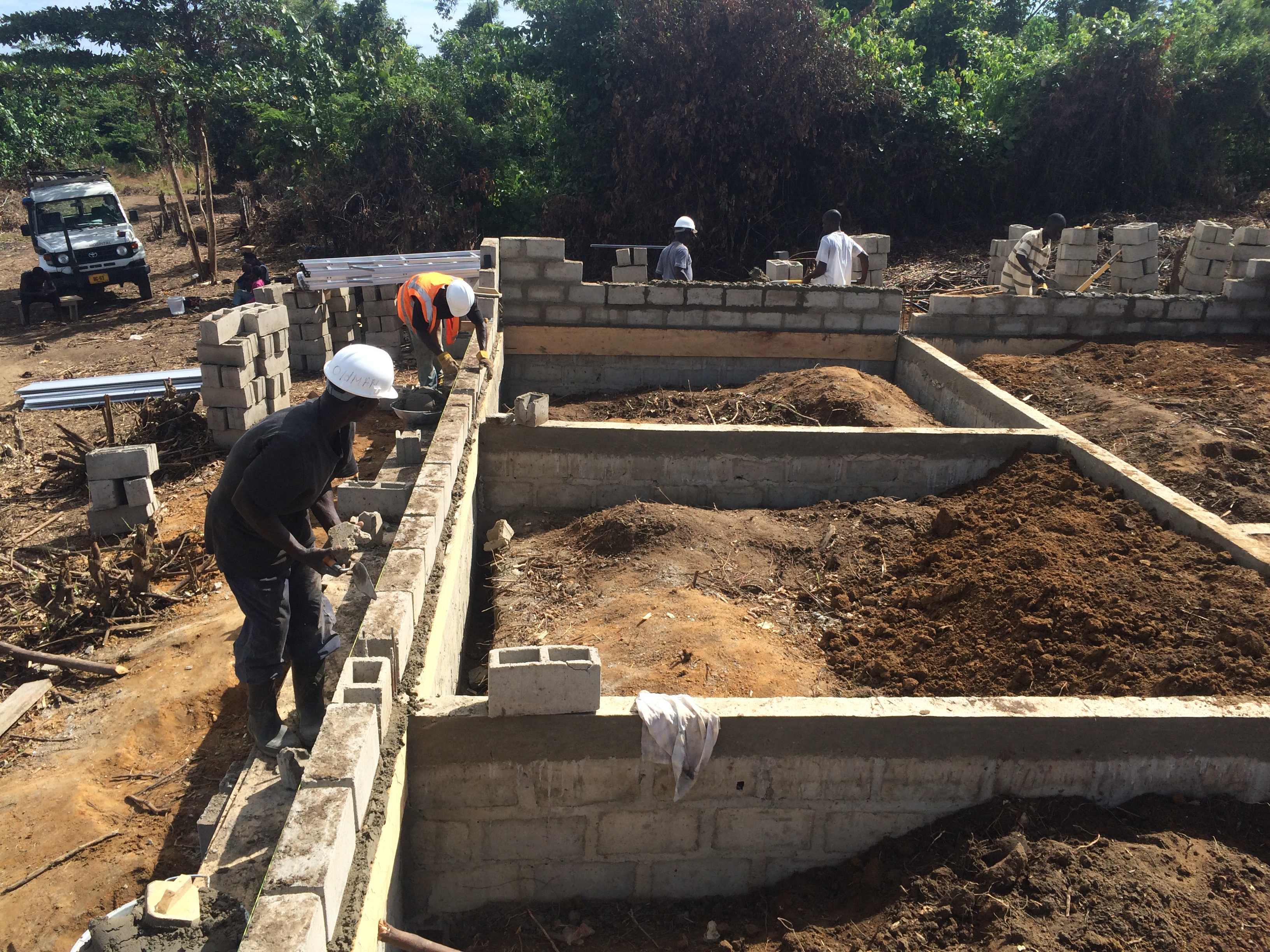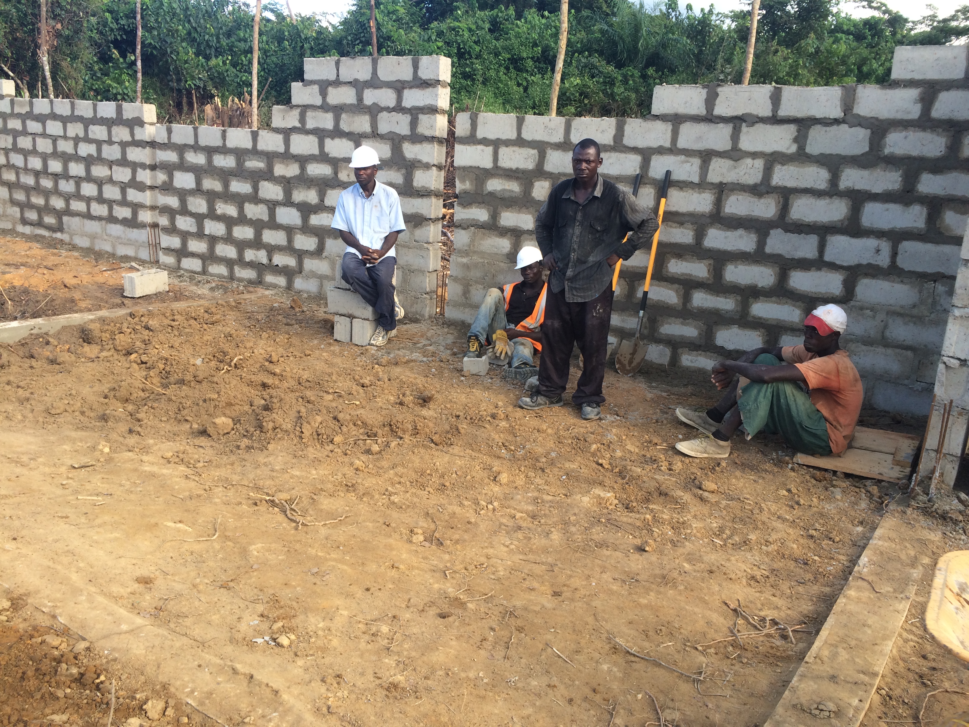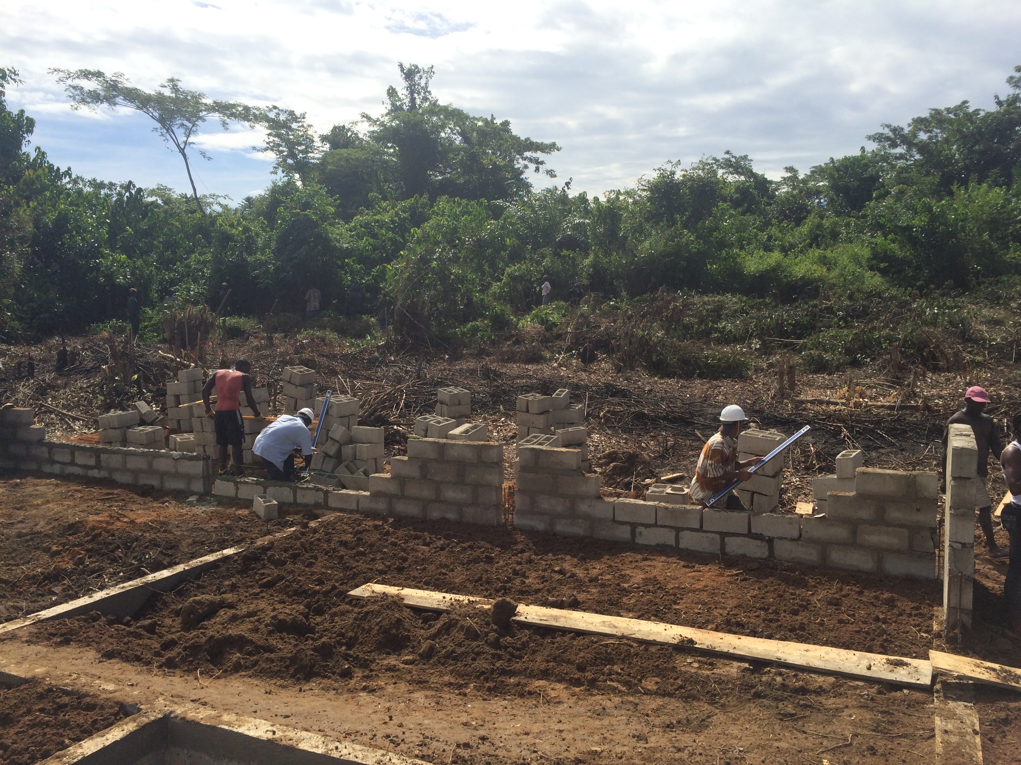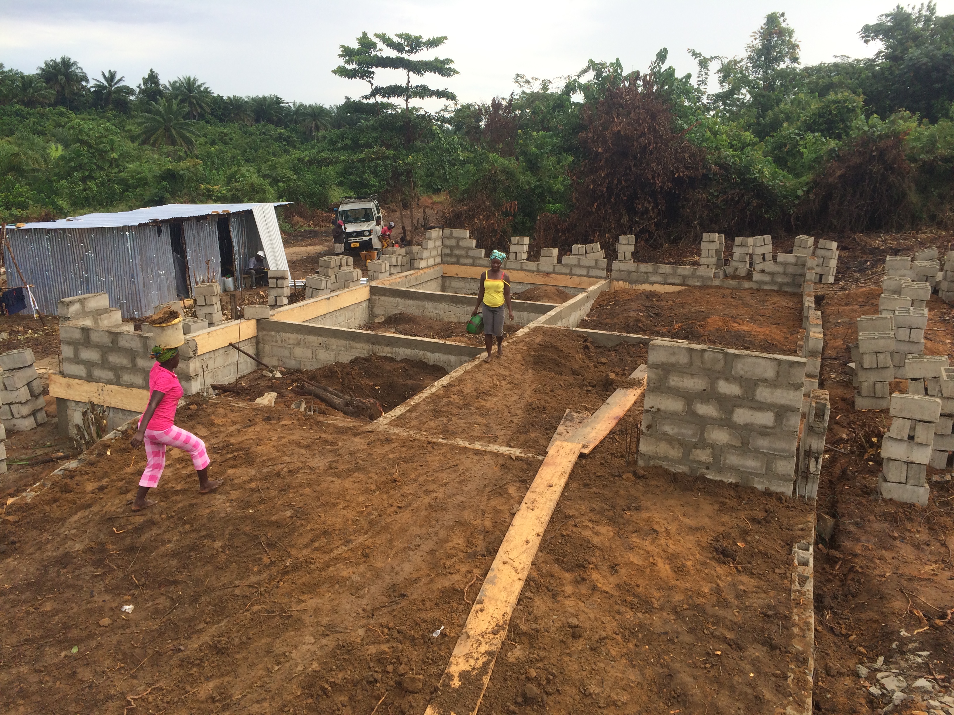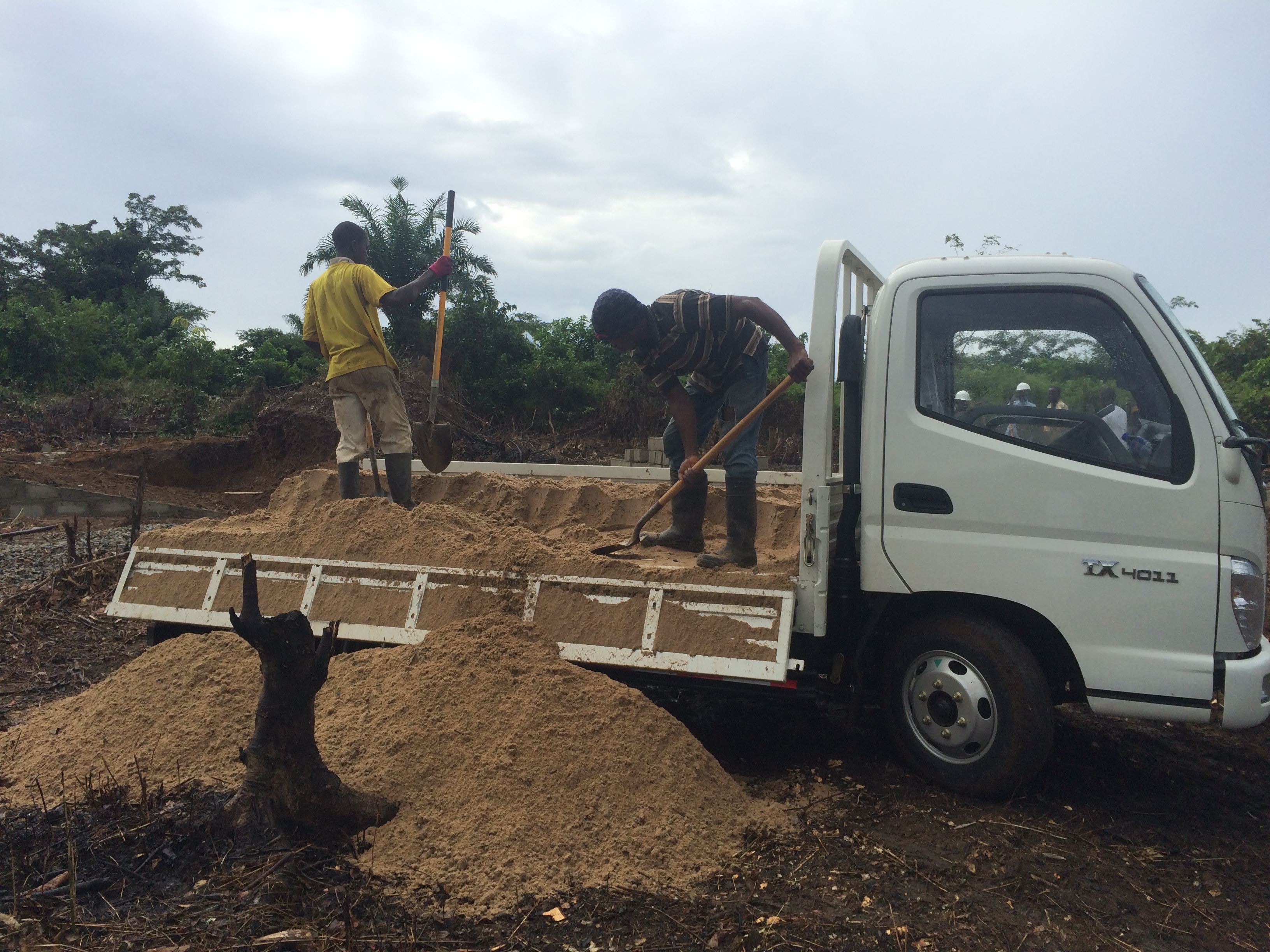 It was good to get back to Phebe and, despite the lack of luxurious a/c, the routine I’ve gotten into has been good. Getting up and out to the work site by 6:30-7:00am after the previous night’s hectic drive, however, was not welcome. But seeing great progress was! The foundation work was complete, the side walls of the vehicle ramp were constructed and in-filled with dirt, the inner structure which ties the perimeter foundation walls together to prevent spreading were done, all the sand had been used to mold stacks of cement blocks…and the volunteers had been brushing the land yesterday! Yee haa! Sam wanted to keep the momentum going so we immediately departed to test baby FOTON’s sand carrying capabilities. We soon found the ground clearance wasn’t quite what it could be to handle the deeply rutted dirt roads leading into the bush where the sand piles await.