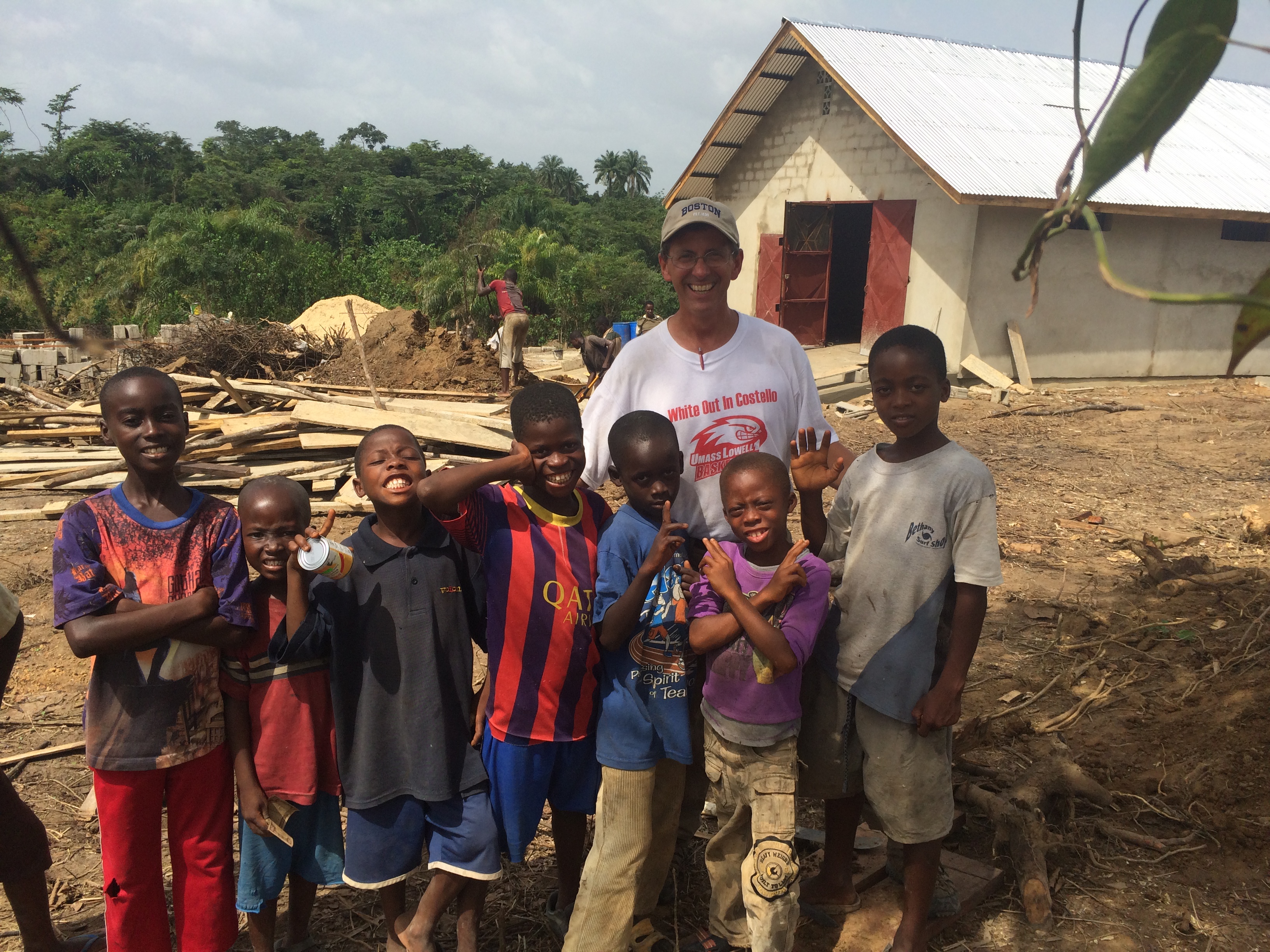 Since I wasn’t going to pick up a shovel or cutlass to help in this heat, I took the opportunity to scrawl “Gbarnga Lutheran Mission Project – November 2015” in the just-plastered side of