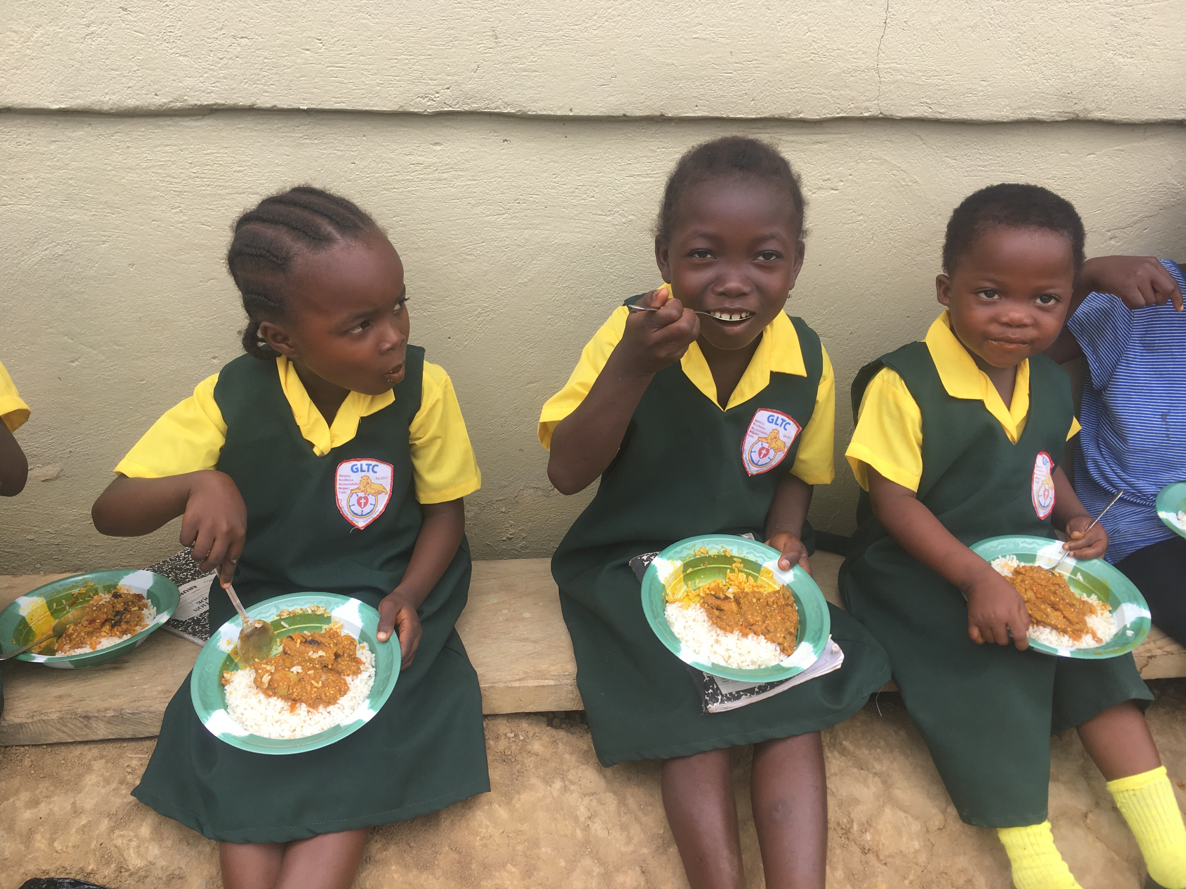 The girls below are enjoying a meal of bitterball soup over rice…don’t you just love their little green jumpers!