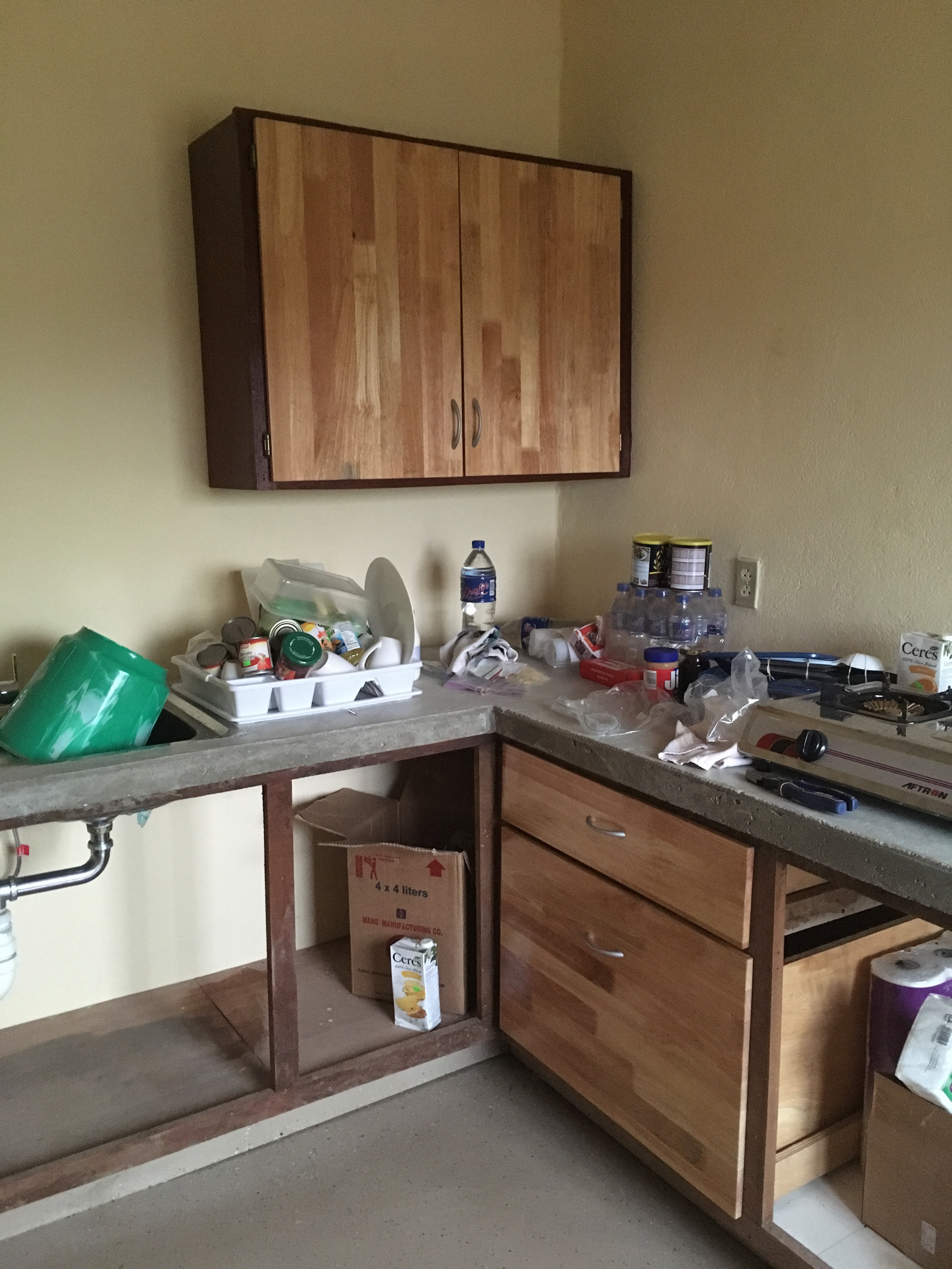 In between everything I’ve been building a couple of cabinets for the kitchen. I’m trying rubber wood panels for the cabinet doors and drawer fronts…supposedly the bugs don’t eat it. It’s a cross pollination of IKEA meets Liberia.