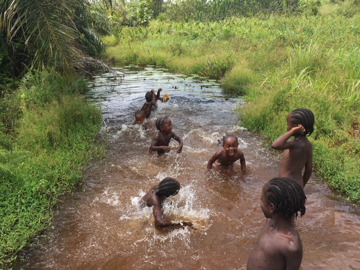 As it was now about 1:30 I headed back to campus for some lunch before the 3:00 PTA meeting. A subset of the after-church-children wanted to join me on my cucumber-laden walk, however, the little children were told by the older ones that they couldn’t come because they would be unattended on the walk home. This did not go over well for a few. Along the path at the edge of the village is a small body of water used for bathing and clothes washing. As we approached it, this group of dejected little ones suddenly transformed, running ahead stripping to their birthday suits and diving into the pool. They had a blast!