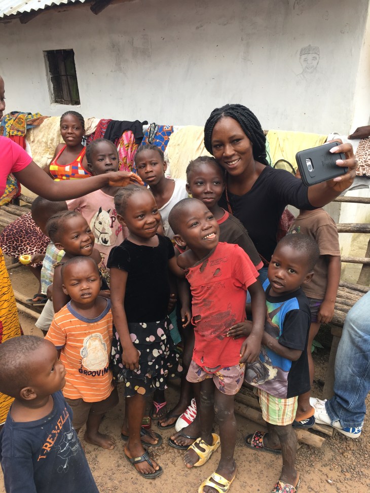 Randell and I arrived at the school mid morning and unloaded the pickup with her driver and one of the security guards, Wilmot. It was a relief to finally be home with everything stacked in one bedroom. I walked her around the campus for the ” highlights tour”. It was too bad school wasn’t in session because it lacked the usual energy. We drove over to the Charles Taylor mansion then into Deanville. She had a blast meeting the village children who loved being in her selfies.