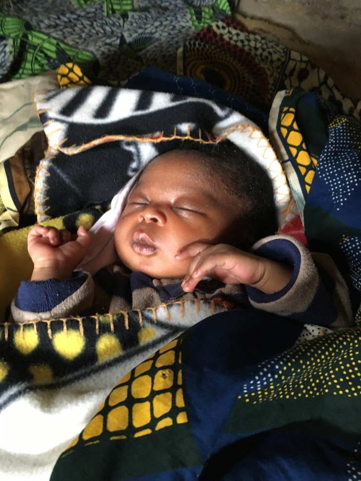 While she played, I was able to visit Samukai’s new sleeping baby all bundled up in their new mud block home. You’d think it was cold with all that swaddling but it’s at least 80 degrees out.