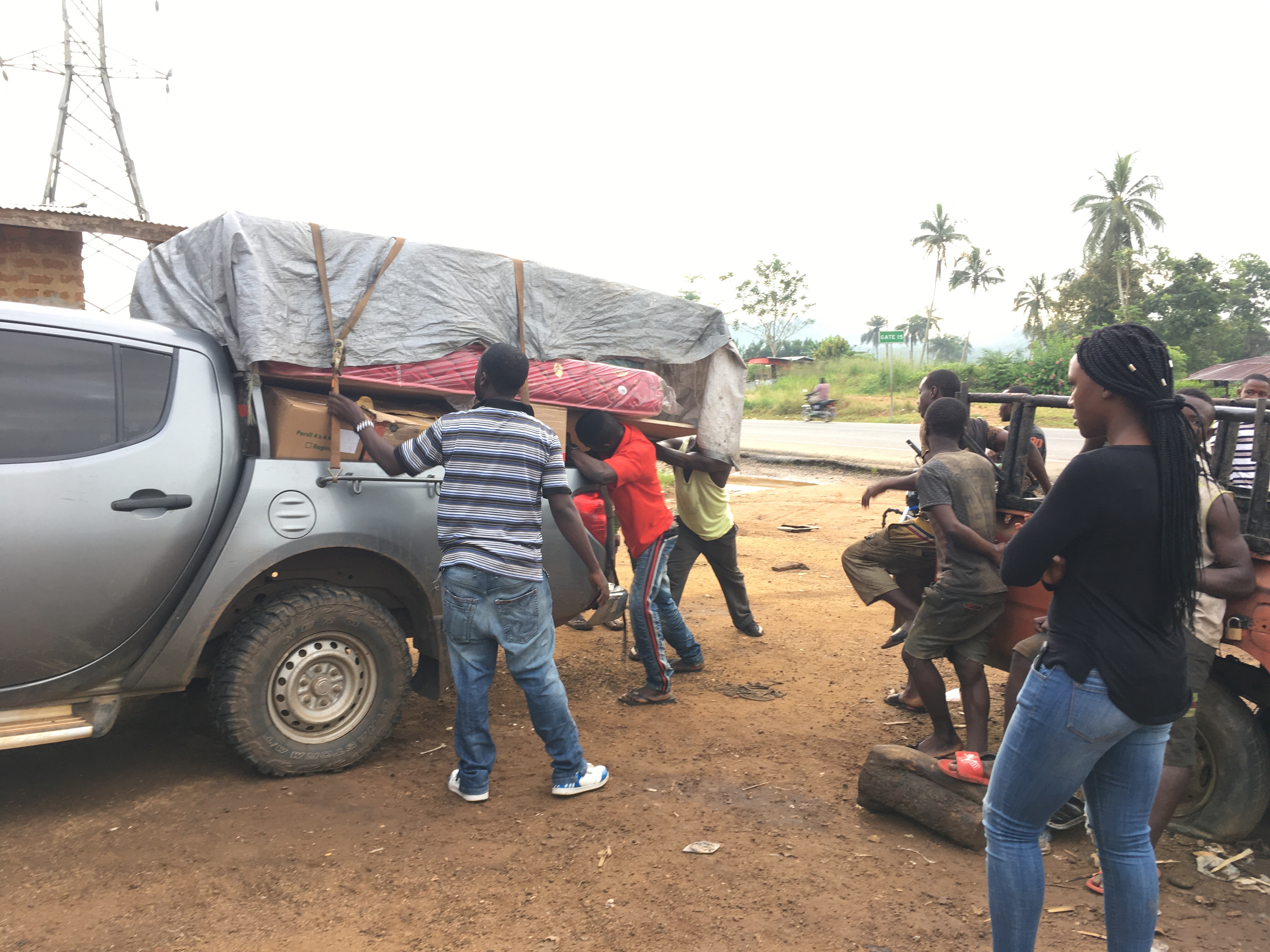 All of our goods in the Foton were then transferred to Randell’s pickup. Off to Gbarnga while John cares for the truck repair.