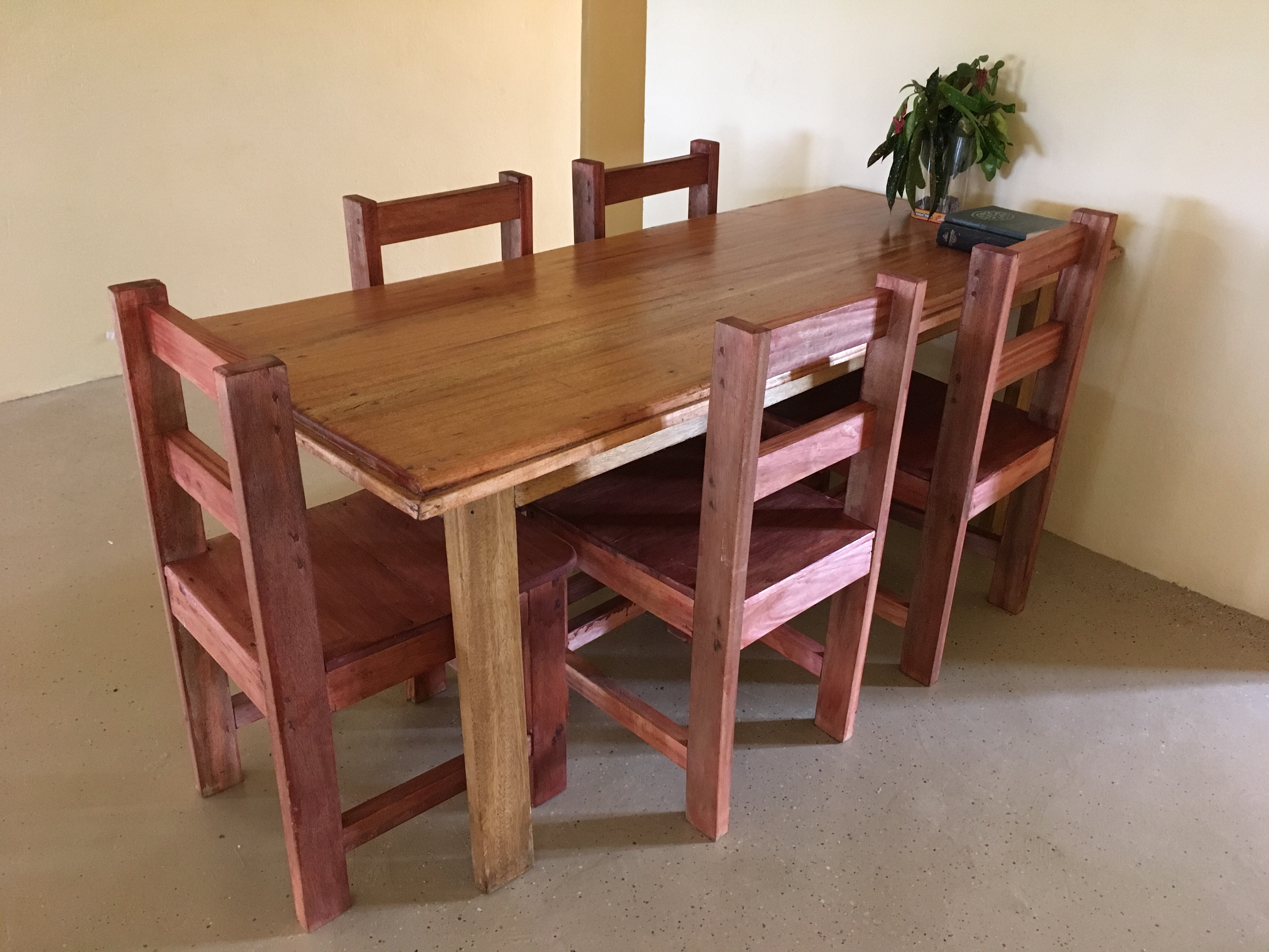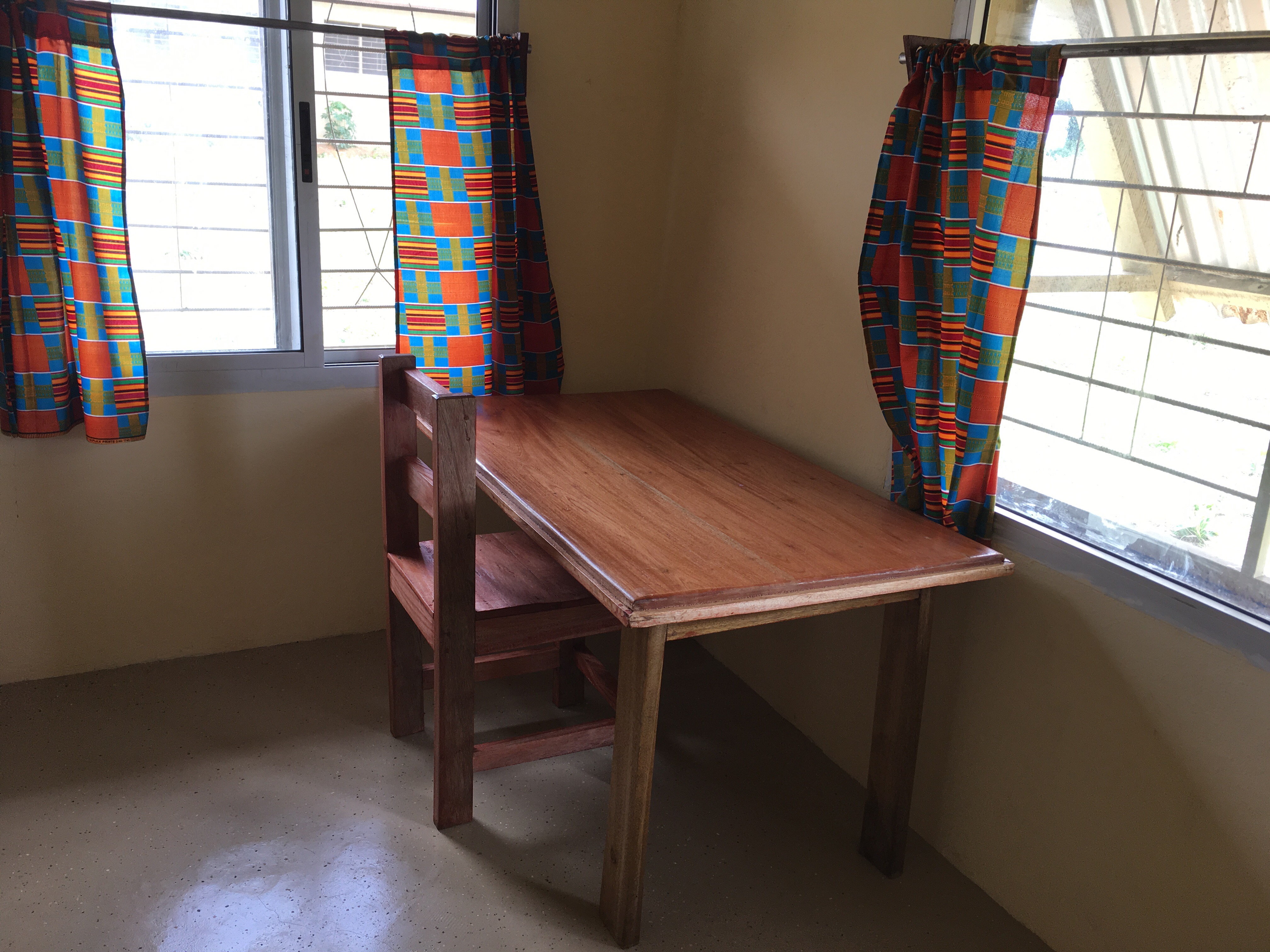 I finally received the last furniture items promised days ago from Silla’s woodworking shop. The bathrooms have mirrors and small side tables while every bedroom now has a desk and chair.