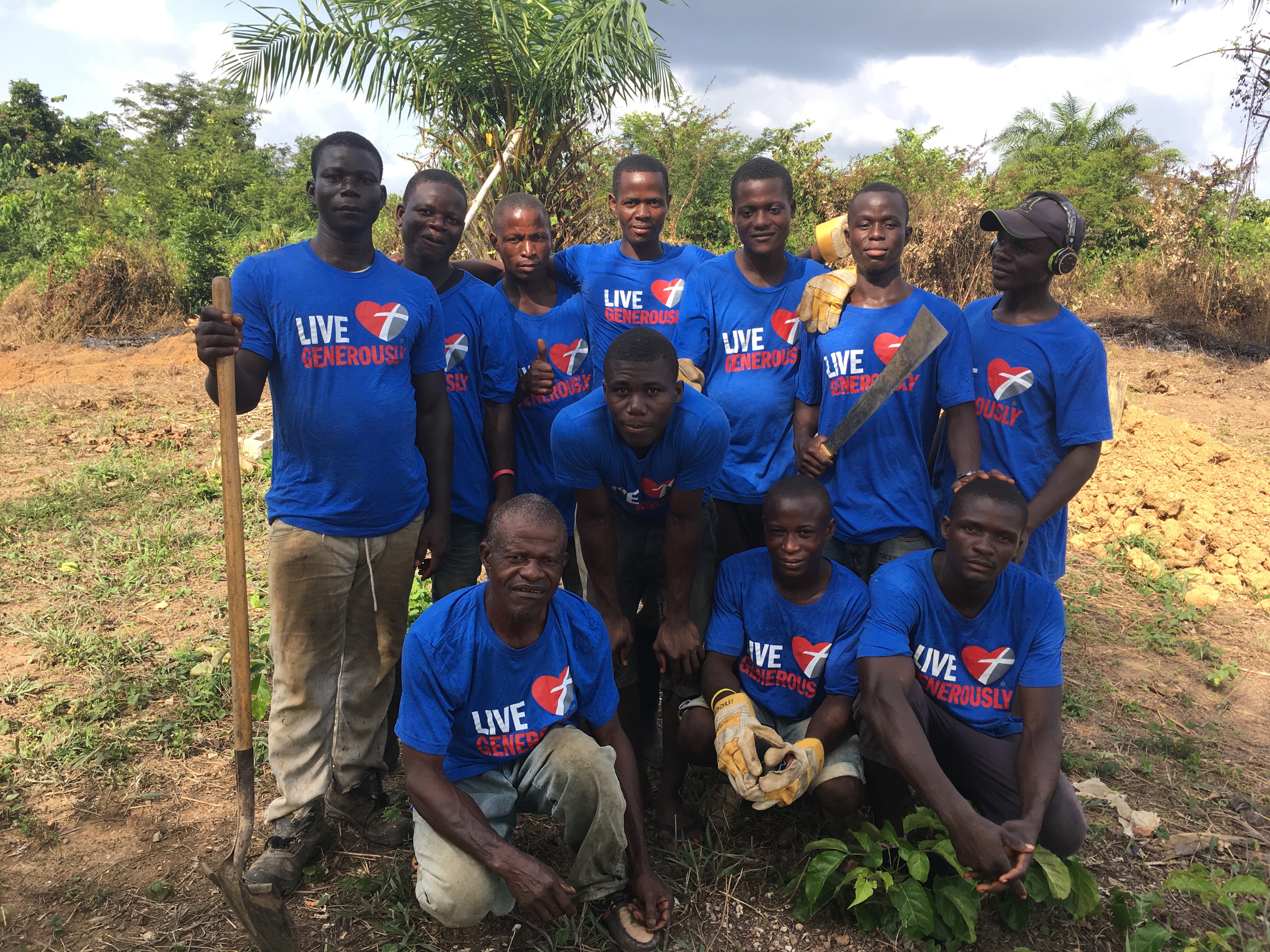 Then there are the guys brushing and destumping the access road to our new poultry farm area who wanted a photo wearing the Thrivent t-shirts I gave them. There’s a definite appeal to having a “team t-shirt” from the security guards to the cooking staff to our now “Team Thrivent Day Laborers”.