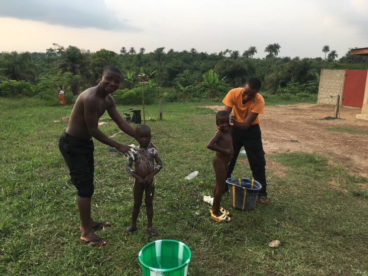 I love seeing men stepping up to be parents…washing their boys in a bucket. The one boy’s mother died this year so he is cared for with his cousin, Koiku.