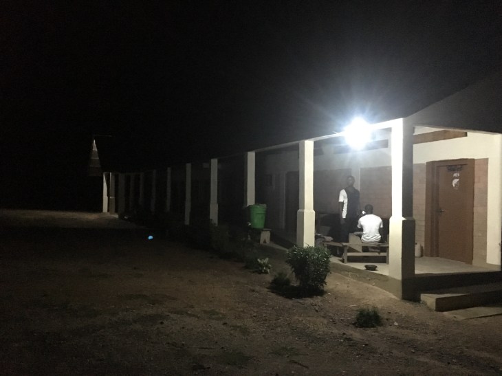 I tried the solar in Sumo’s office by plugging my laptop in and showing some of my videos of people in Deanville to Moses’ grandfather, Sibley (who also came to visit asking for money). All seems to be working and tonight we have the security lights running on the school. The guards love it.