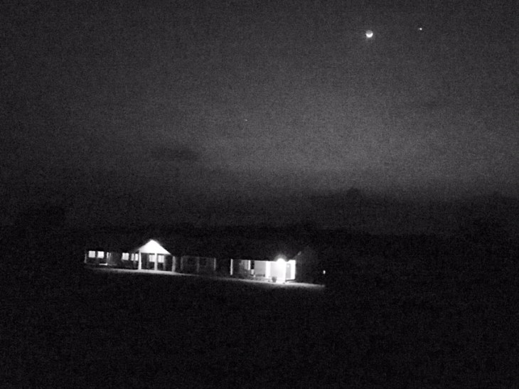 One of the interesting things to note – if you can catch it in this grainy photo – is the crescent moon. Being this close to the equator means the crescent is a u-shape instead of a c-shape. The sliver of exposed moon is on the bottom in this photo. Pretty cool looking.