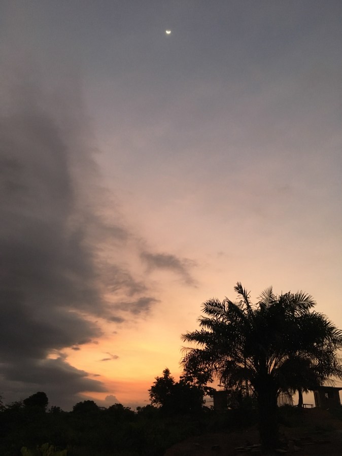 Returning to the guesthouse the sunset was beautiful as the storm front approached from the south (left in this photo) with that bottom-moon sliver hanging brightly above it all.