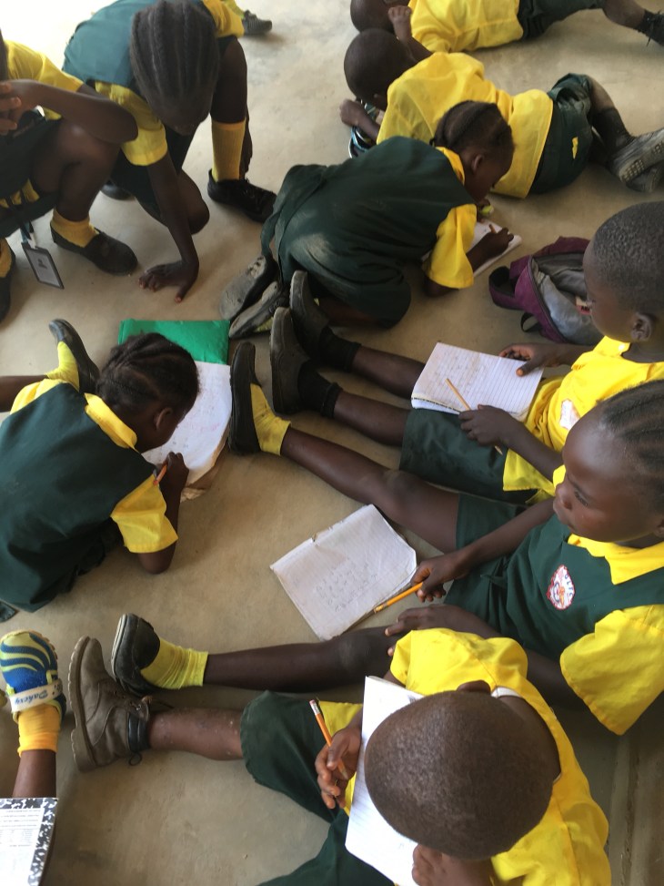 Here are children on the porch practicing writing after the ABC class.