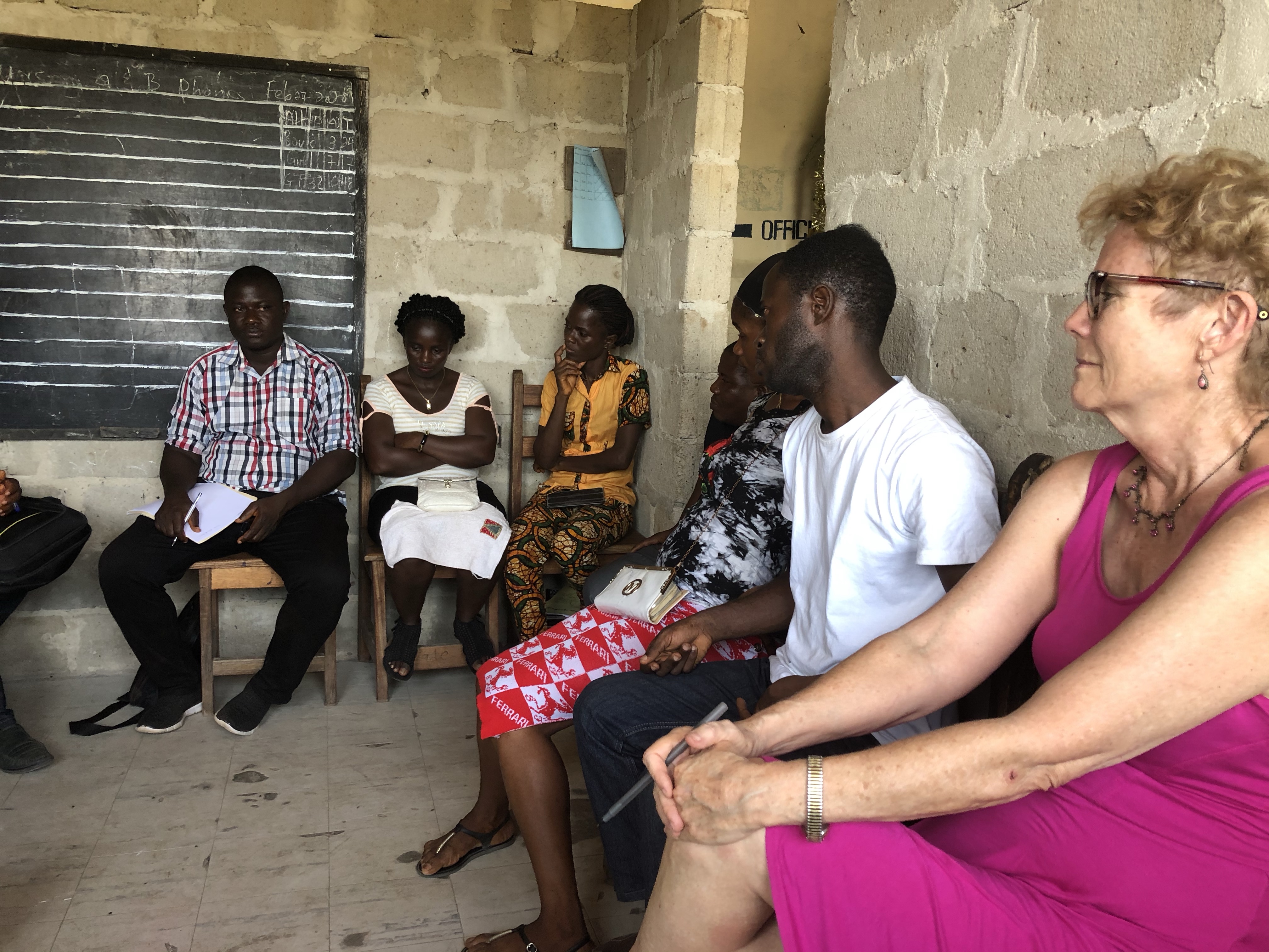 After completing a morning of community surveys, I returned to spend yesterday afternoon with Lyn Gray and Geri Melosh who returned for their extended teacher observation time. Being more familiar with the two other afternoon teachers, Dolo and Darlington, I joined Geri in the class of our newer teacher, Garmai. My strongest impression was that Garmai was not prepared. The Liberia Reads! teacher’s manual provides very clear detailed lesson plans for each day. I was surprised at the amount of referencing of the manual she did, as if it were her first time seeing it. I need to give her a little slack because she had three observers. But this is week 21 of the program and it follows a similar pattern throughout the year and she should have felt comfortable with the material by now.