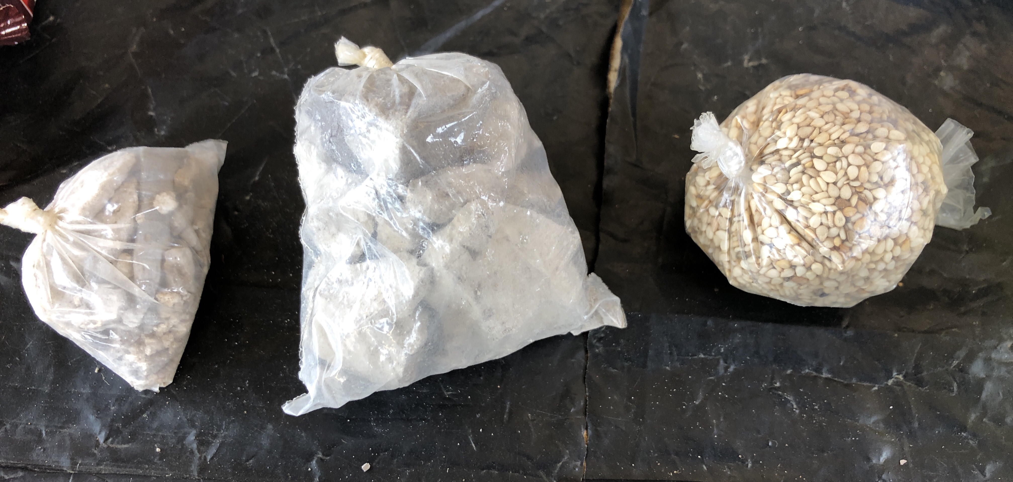 A woman sitting in front of her market stall tried to describe some of the items that were unfamiliar to me. Each item is in a small plastic bag about the size of 2 tablespoons.