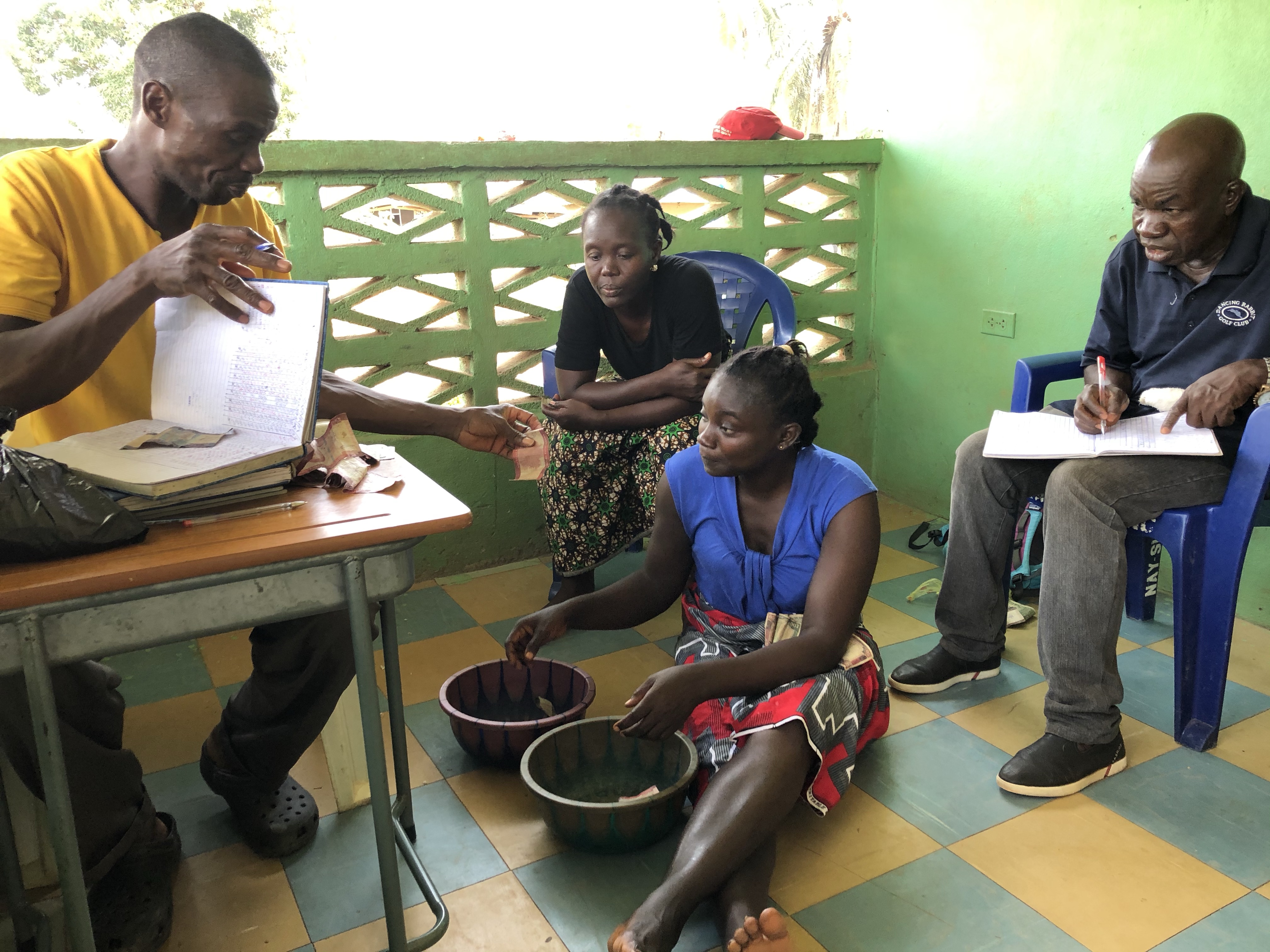 Each Saturday they gather, share an opening prayer, pay dues, and place money into a savings fund locked in a steel box. Detailed records are made in a ledger book following a series of checks and rechecks to confirm accuracy of the stacks of money — 1,200LD (about $6 USD) for this person, 4,000LD for the next. The chair lady and the appointed counter sit on the floor, rifling through neatly rubber banded bundles, placing them in a small plastic bowl when completed. Increments of 200LD are considered 1 “share” and no partial shares are allowed. After all dues and the week’s savings contributions are recorded by shares, a separate ledger is pulled out to account for loan transactions.